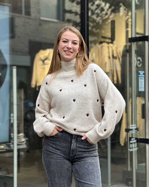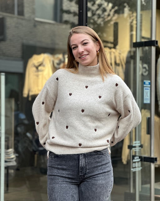 One-size Gebreide Sweater met gebreide Harten.