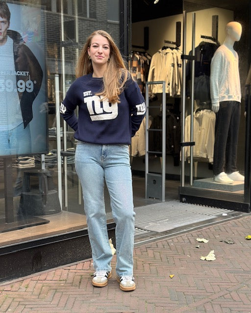 High Waist Wide Leg jeans van het merk Hello Miss, Deze broek heeft glitters op de voor- en achterkant. Broek is extra lang.