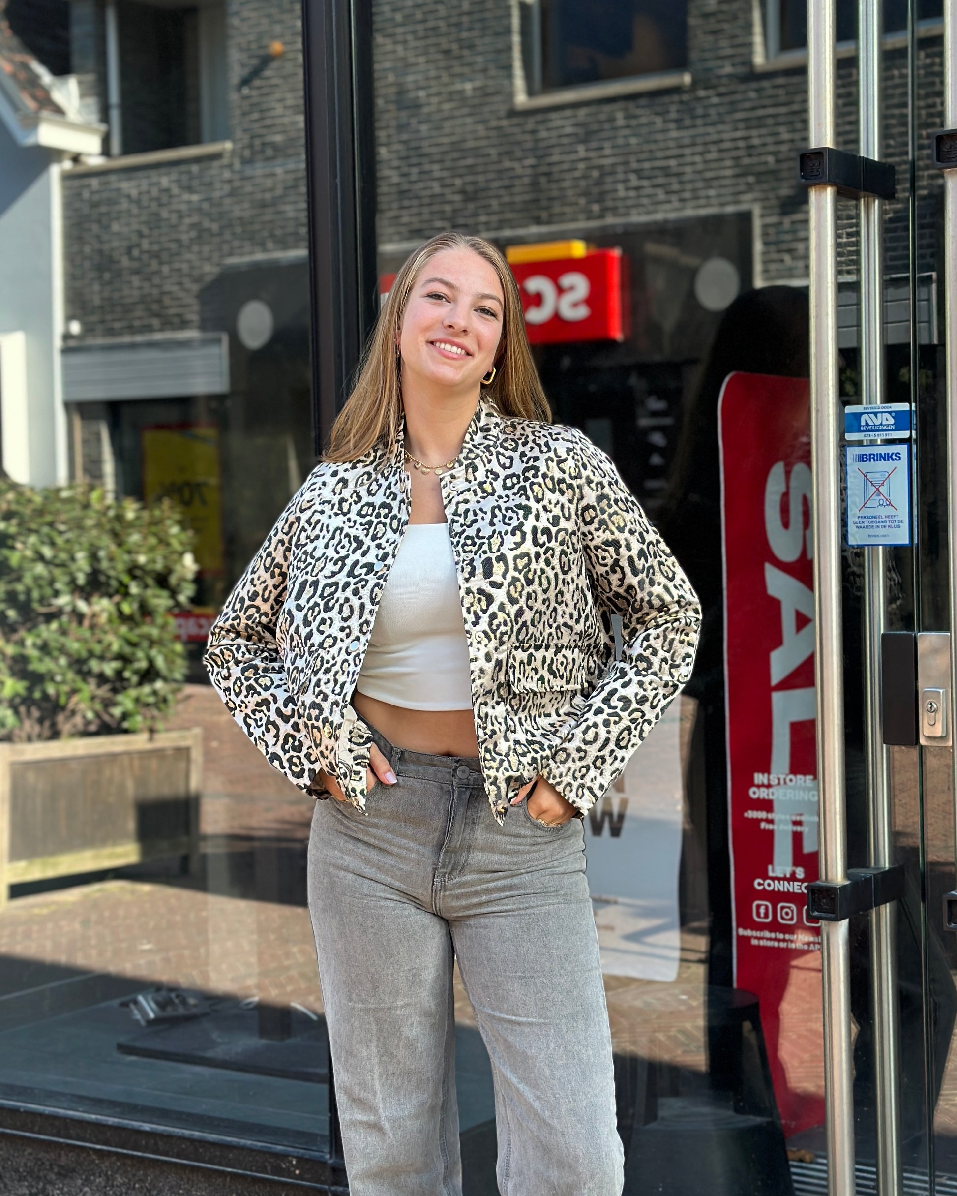 Leopard coat with gold details.