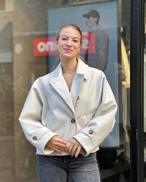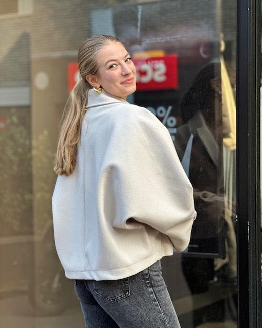 Heerlijke Poncho model kort jasje. Jasje heeft steekzakken en lange mouwen.