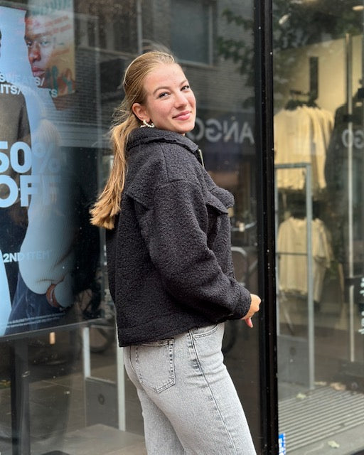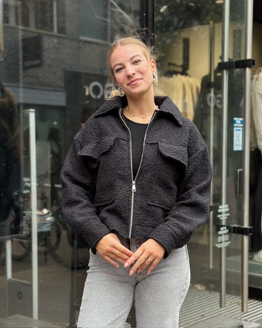 One-Size korte Teddy jas met ritssluiting, 2 voorzakken. Dit is een tussenjas.