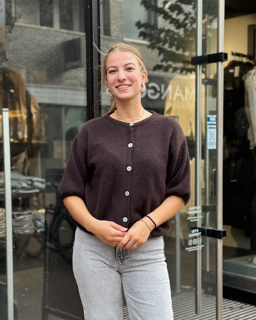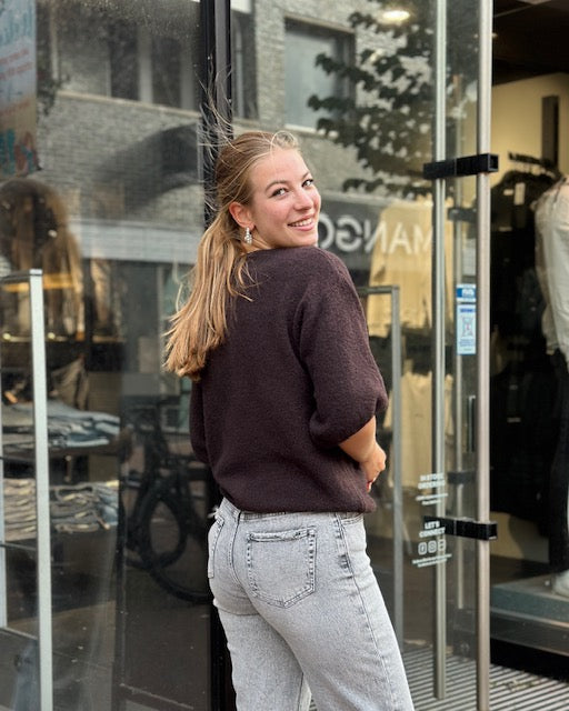 Heerlijk zachte teddy trui met grote knopen, ideaal voor een stijlvolle maar comfortabele look. De trui heeft een losse pasvorm en is daardoor te dragen tot en met maat 42. Het model heeft een ronde hals en halflange mouwen met een lichte pof, wat zorgt voor een moderne en vrouwelijke uitstraling.